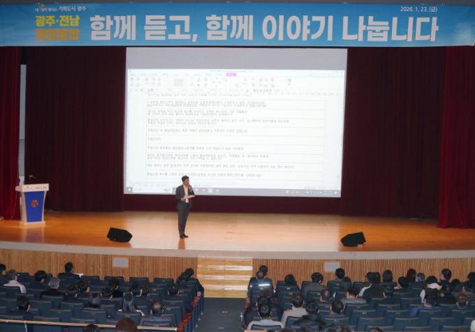 [È£³²´º½º¶óÀÎ = ¼ÀºÈ« ±âÀÚ] ±¤ÁÖ±¤¿ª½Ã(½ÃÀå °±âÁ¤)´Â 23ÀÏ ½Ãû ´ëȸÀǽǿ¡¼ ¡®±¤ÁÖÀü³² ÇàÁ¤ÅëÇÕ Á÷¿ø ¼³¸íȸ¡¯¸¦ °³ÃÖÇß´Ù.