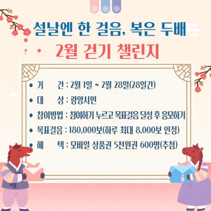 [È£³²´º½º¶óÀÎ = ¼ÀºÈ« ±âÀÚ] ±¤¾ç½Ã´Â ½Ã¹ÎÀÇ °Ç° ÁõÁø°ú °È±â ½Çõ È®»êÀ» À§ÇØ ¿À´Â 2¿ù 1ÀϺÎÅÍ 2¿ù 28ÀϱîÁö °Ç°°È±â ½Çõ ¸ð¹ÙÀÏ °È±â ¾Û ¡®¿öÅ©¿Â¡¯À» Ȱ¿ëÇÑ ¡®¼³³¯¿£ ÇÑ °ÉÀ½, º¹Àº µÎ¹è! 2¿ù °È±â 縰Áö¡¯¸¦ ¿î¿µÇÑ´Ù°í ¹àÇû´Ù.