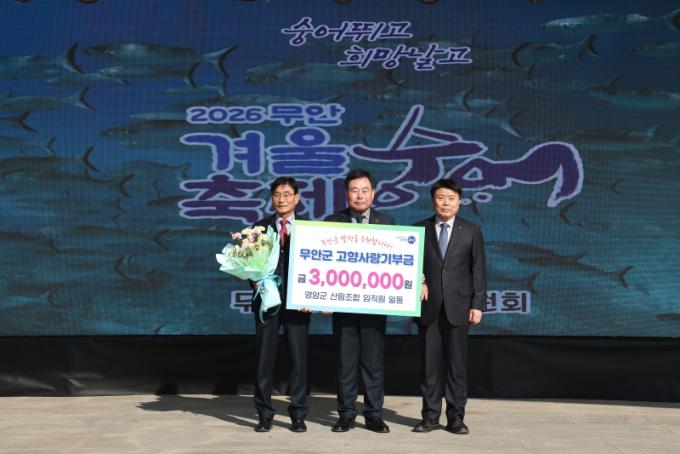 [È£³²´º½º¶óÀÎ = ¼ÀºÈ« ±âÀÚ] ¹«¾È±º(±º¼ö ±è»ê)Àº Áö³ 24ÀÏ ¿¸° ¡®2026 ¹«¾È°Ü¿ï¼þ¾îÃàÁ¦¡¯¸¦ °è±â·Î ¿µ¾Ï±º »ê¸²Á¶ÇÕ ÀÓÁ÷¿øµéÀÌ Áö¿ª °£ »ó»ý ¹ßÀü°ú ±âºÎ¹®È È®»êÀ» À§ÇØ ¹«¾È±º °íÇâ»ç¶û±âºÎ±Ý 300¸¸ ¿øÀ» ±âŹÇß´Ù°í ¹àÇû´Ù.