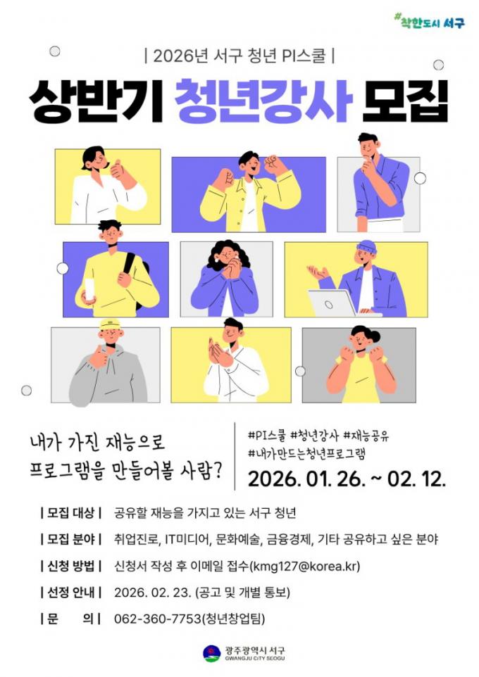 ¸ðÁý ±â°£Àº ¿À´Â 2¿ù12ÀϱîÁöÀ̸ç Âü¿©¸¦ Èñ¸ÁÇϴ û³âÀº ¼±¸Ã» ´©¸®Áý °í½Ã°ø°í¶õÀÇ °ü·Ã ¼·ù¸¦ ÁغñÇØ ÀüÀÚ¿ìÆí(kmg127@korea.kr)À¸·Î Á¦ÃâÇÏ¸é µÈ´Ù. ÀÚ¼¼ÇÑ ³»¿ëÀº ¼±¸Ã» ÀÏÀÚ¸®Ã»³âÁö¿ø°ú(062-360-7753)·Î ¹®ÀÇÇÏ¸é µÈ´Ù.