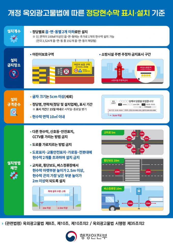 ¾Æ¿ï·¯ 2026³â 6¿ù 3ÀÏ ½Ç½Ã ¿¹Á¤ÀÎ Àü±¹µ¿½ÃÁö¹æ¼±°Å¿Í °ü·ÃÇØ, ¼±°ÅÀÏ Àü 120ÀÏ À̳»¿¡ Á¤´ç Çö¼ö¸·À» °Ô½ÃÇÒ °æ¿ì ¡¸°øÁ÷¼±°Å¹ý¡¹ Á¦90Á¶(½Ã¼³¹° ¼³Ä¡ µîÀÇ ±ÝÁö)¿¡ À§¹ÝµÉ ¼ö ÀÖ¾î °¢º°ÇÑ ÁÖÀǰ¡ ¿ä±¸µÈ´Ù.