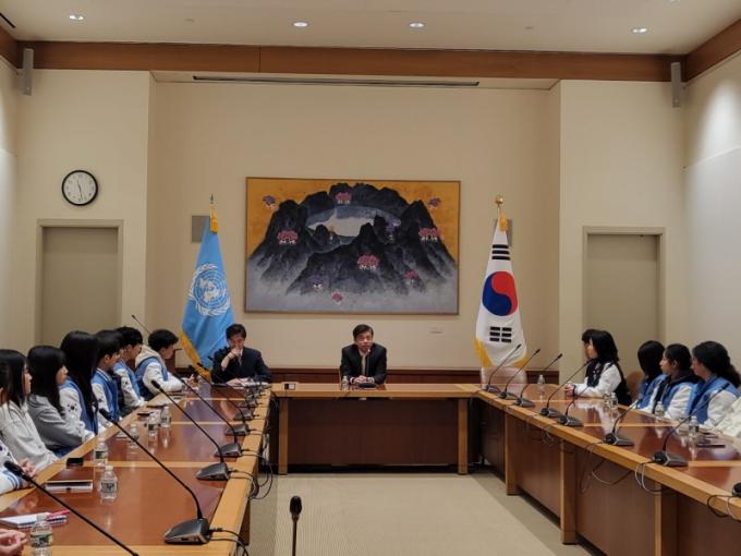 [È£³²´º½º¶óÀÎ = ¼ÀºÈ« ±âÀÚ] Àü³²±³À° ²Þ½ÇÇöÀç´Ü(ÀÌ»çÀå ±è´ëÁß)Àº Àü³²Çлý°ø°ø¿Ü±³½ºÄð 2±â Çлý¿Ü±³°üµéÀÌ 22~30ÀÏ ¿ö½ÌÅÏ¡¤´º¿å¡¤»÷ÇÁ¶õ½Ã½ºÄÚ ÀÏ¿ø¿¡¼ ±¹¿ÜȰµ¿À» ÁøÇà ÁßÀÎ °¡¿îµ¥, Áö³ 26ÀÏ ¹Ì±¹ ´º¿å¿¡ À§Ä¡ÇÑ ±¹Á¦¿¬ÇÕ(UN) º»ºÎ¿Í ÁÖÀ¯¿£´ëÇѹα¹´ëÇ¥ºÎ¸¦ ¹æ¹®ÇØ Â÷ÁöÈÆ ´ë»ç¿Í °£´ãȸ¸¦ °¡Á³´Ù°í ¹àÇû´Ù.