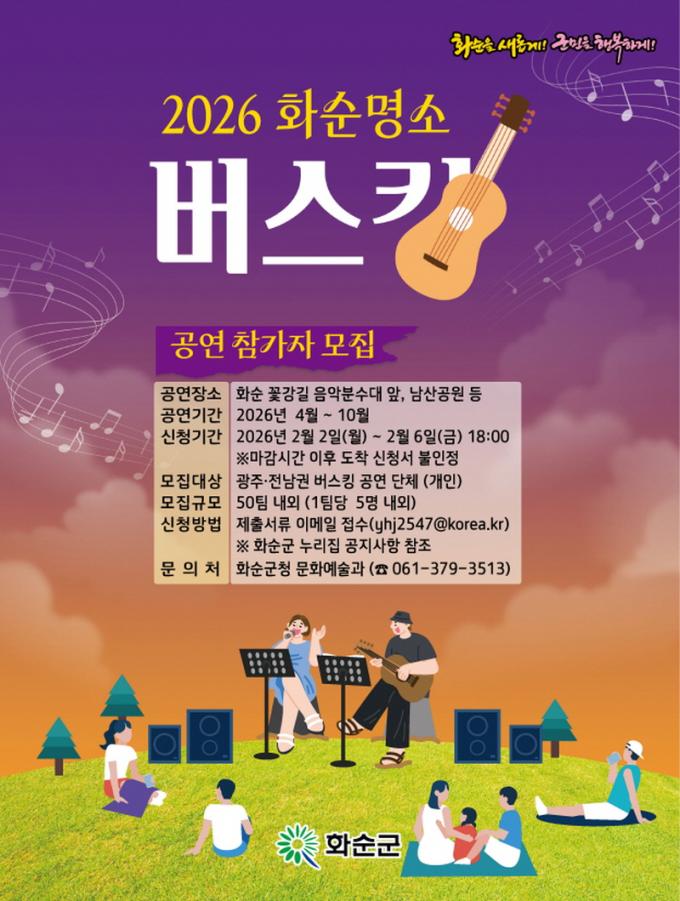 [È£³²´º½º¶óÀÎ = ¼ÀºÈ« ±âÀÚ] ȼø±º(±º¼ö ±¸º¹±Ô)Àº 29ÀÏ Áö¿ª °ü±¤ Ȱ¼ºÈ¿Í ÀÏ»ó ¼Ó ¹®È ÇâÀ¯ ±âȸ È®´ë¸¦ À§ÇØ ¡®2026 ȼø ¸í¼Ò ¹ö½ºÅ·¡¯¿¡ Âü¿©ÇÒ °ø¿¬ÀÚ¸¦ °ø°³¸ðÁý ÇÑ´Ù°í ¹àÇû´Ù.