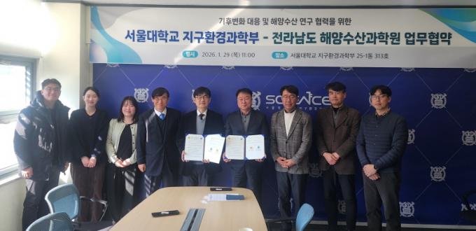 Àü¶ó³²µµÇؾç¼ö»ê°úÇпø(¿øÀå ±èÃæ³²)°ú ±¹¸³´ëÇйýÀÎ ¼¿ï´ëÇб³ Áö±¸È¯°æ°úÇкÎ(ÇкÎÀå ¹Ú·ÏÁø)´Â 29ÀÏ ¼¿ï´ëÇб³¿¡¼ ¡®±âÈĺ¯È ´ëÀÀ Áö¼Ó °¡´ÉÇÑ ÇØ¾ç¼ö»ê ¿¬±¸ ü°è ±¸Ã࡯À» À§ÇÑ ¾÷¹«Çù¾à(MOU)À» Çß´Ù.