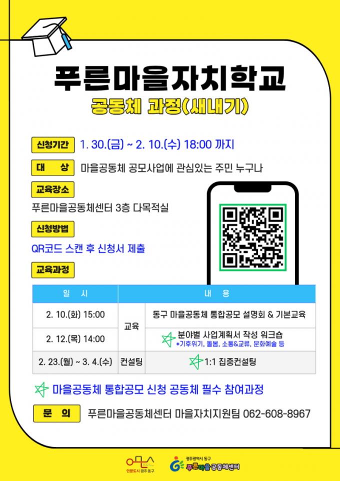 [È£³²´º½º¶óÀÎ = ¼ÀºÈ« ±âÀÚ] ±¤Áֽà µ¿±¸´Â ¸¶À»°øµ¿Ã¼ Ȱµ¿¿¡ °ü½É ÀÖ´Â ÁÖ¹ÎÀ» ´ë»óÀ¸·Î ¡®Çª¸¥¸¶À»ÀÚÄ¡Çб³ °øµ¿Ã¼ °úÁ¤(»õ³»±â)¡¯À» ÀÌ´Þ 10ÀϺÎÅÍ ¿À´Â 3¿ù 4ÀϱîÁö ¿î¿µÇÑ´Ù°í ¹àÇû´Ù.