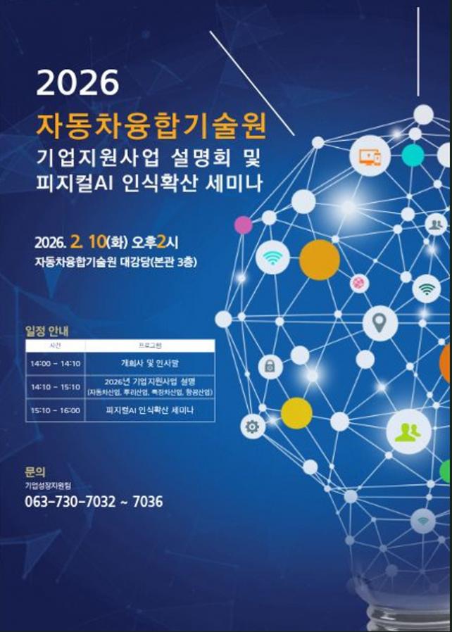 [È£³²´º½º¶óÀÎ = ¼ÀºÈ« ±âÀÚ] ÀüºÏƯº°ÀÚÄ¡µµ´Â µµ³» ÀÚµ¿Â÷¡¤»Ñ¸®¡¤Æ¯À塤Ç×°ø»ê¾÷ µî Áַ»ê¾÷ÀÇ °æÀï·Â °È¸¦ À§ÇØ ¿À´Â 10ÀÏ ÀÚµ¿Â÷À¶ÇÕ±â¼ú¿ø¿¡¼ ¡®2026³â ±â¾÷Áö¿ø»ç¾÷ ¼³¸íȸ ¹× ÇÇÁöÄÃAI »ê¾÷ ÀνÄÈ®»ê ¼¼¹Ì³ª¡¯¸¦ °³ÃÖÇÑ´Ù°í 5ÀÏ ¹àÇû´Ù.