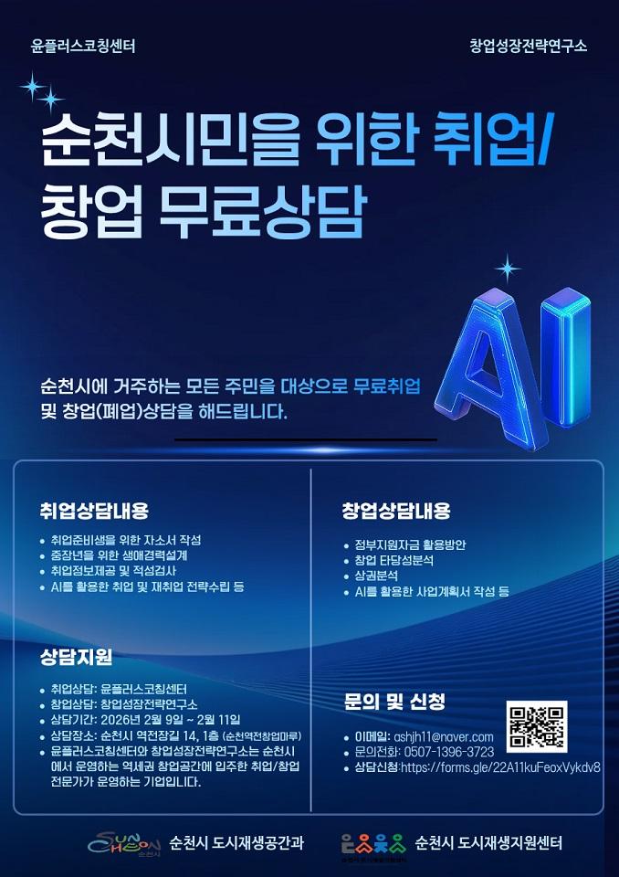 À̹ø »ó´ãÀº ¿À´Â 9ÀϺÎÅÍ 11ÀϱîÁö 3Àϰ£, ¼øÃµ¿ªÀü â¾÷¸¶·ç(¿ªÀüÀ屿 14) 1Ãþ¿¡¼ ÁøÇàµÇ¸ç, Áö¿ªÁֹΰú (¿¹ºñ)â¾÷ÀÚ, û³â, Çлý µîÀ» ´ë»óÀ¸·Î ¸ÂÃãÇü Àü¹®»ó´ãÀ» Á¦°øÇÑ´Ù.
