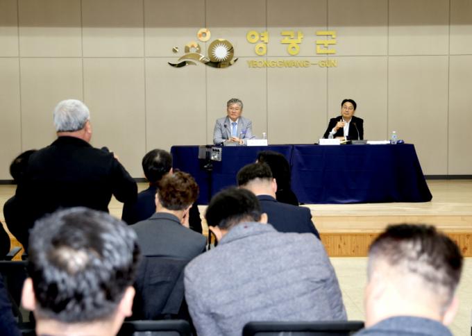 [È£³²´º½º¶óÀÎ = ¼ÀºÈ« ±âÀÚ] ¿µ±¤±ºÀº 2¿ù 5ÀÏ(¸ñ) ¿µ±¤±ºÃ» ´ëȸÀǽǿ¡¼ ¿¸° ±¤ÁÖÀü³² ÇàÁ¤ÅëÇÕ ¿µ±¤±º »ó»ýÅäÅ©¿¡¼ °±âÁ¤ ±¤ÁÖ±¤¿ª½ÃÀåÀÇ ¹æ¹®À» ±º¹Îµé°ú ÇÔ²² ȯ¿µÇß´Ù.