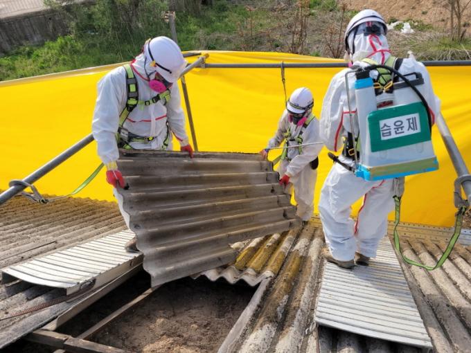1±Þ ¹ß¾Ï¹°ÁúÀÎ ¼®¸éÀ» ÇÔÀ¯Çϰí ÀÖ´Â ½½·¹ÀÌÆ®´Â °ú°Å °Ç¹°ÀÇ ÁöºØÀ» µ¤À» ¶§ ÁÖ·Î »ç¿ëÇß´Ù. ¿À·¡µÈ °Ç¹°À» ö°ÅÇÒ ¶§ ½½·¹ÀÌÆ®³ª º®¸é ³»ºÎ¿¡ ¼®¸éÀÌ È®ÀÎµÇ¸é ¹Ýµå½Ã Àü¹® ¾÷ü¿¡ 󸮸¦ ÀÇ·ÚÇØ¾ß ÇÑ´Ù.
