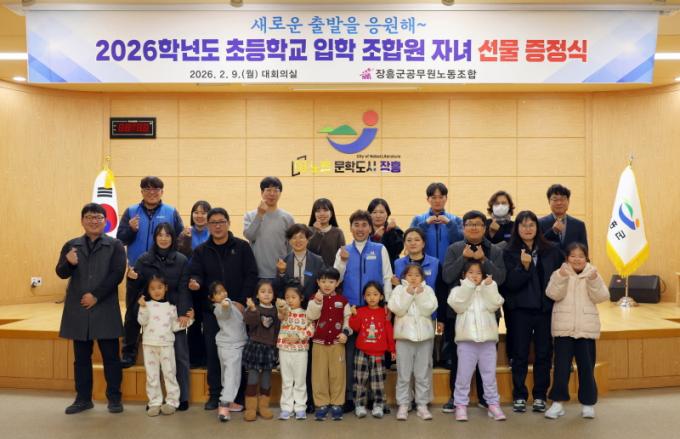 [È£³²´º½º¶óÀÎ = ¼ÀºÈ« ±âÀÚ] ÀåÈﱺ°ú ÀåÈﱺ°ø¹«¿ø³ëµ¿Á¶ÇÕÀº Áö³ 9ÀÏ, 2026Çг⵵ ÃʵîÇб³ ÀÔÇÐÀ» ¾ÕµÐ Á¶ÇÕ¿ø ÀÚ³à¿Í °¡Á¤À» °Ý·ÁÇÏ´Â Çà»ç¸¦ ¿°í Çпëǰ ¼¼Æ®¸¦ Àü´ÞÇß´Ù.