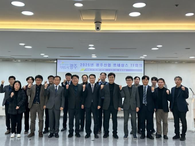 ±¤ÁÖ±¤¿ª½Ã(½ÃÀå °±âÁ¤)´Â 10ÀÏ ½Ãû ÁßȸÀǽǿ¡¼ ±è¿µ¹® ¹®È°æÁ¦ºÎ½ÃÀå ÁÖÀç·Î ¡®±¤ÁÖ»ê¾÷ ¸£³×»ó½º Àü´ãÆÀ(TF)¡¯ ù ȸÀǸ¦ ¿°í, ±¤Áֽà ÁÖ¿ä Àü·«»ê¾÷ÀÇ ½ÇÇà·ÂÀ» ³ôÀ̱â À§ÇÑ ÃßÁø ¹æÇâÀ» ³íÀÇÇß´Ù.
