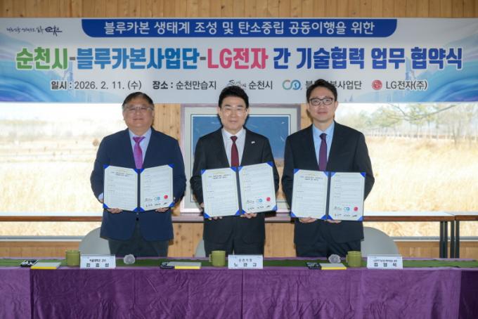 [È£³²´º½º¶óÀÎ = ¼ÀºÈ« ±âÀÚ] ¼øÃµ½Ã´Â 11ÀÏ ¼øÃµ¸¸½ÀÁö¿¡¼ ¼¿ï´ë ºí·çÄ«º»»ç¾÷´Ü, LGÀüÀÚ(ÁÖ)¿Í ÇÔ²² ¡¸ºí·çÄ«º» »ýŰè Á¶¼º ¹× ź¼ÒÁ߸³ °øµ¿ ÀÌÇàÀ» À§ÇÑ ¾÷¹«Çù¾à¡¹À» ü°áÇß´Ù°í ¹àÇû´Ù.