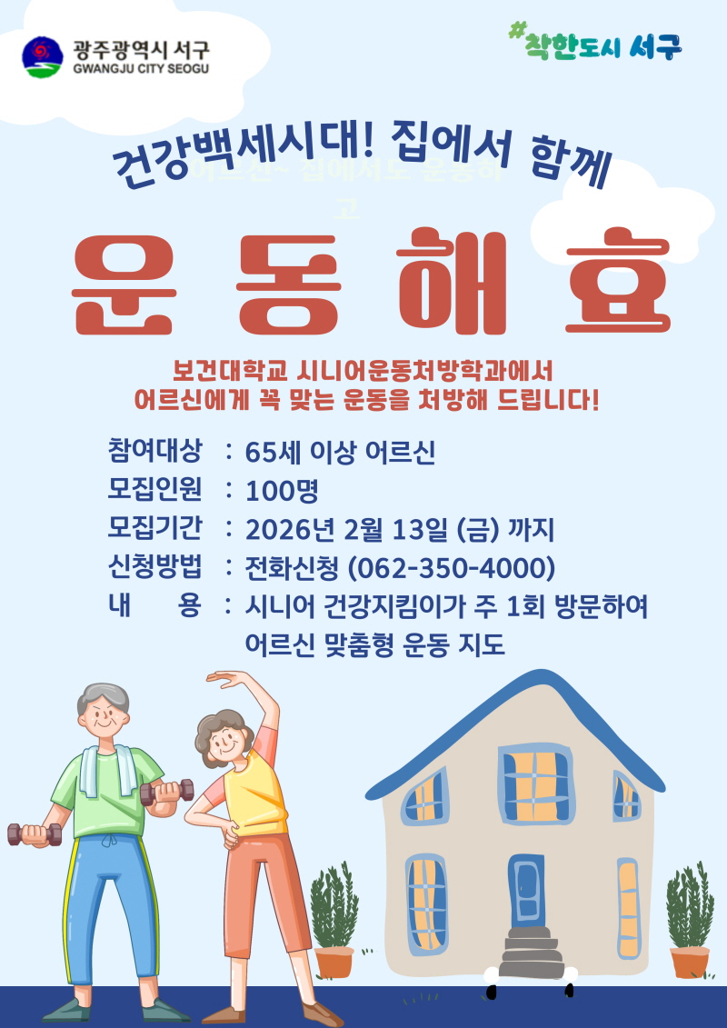 [È£³²´º½º¶óÀÎ = ¼ÀºÈ« ±âÀÚ] ±¤ÁÖ±¤¿ª½Ã ¼±¸(±¸Ã»Àå ±èÀ̰)°¡ °Ç°Çϰí Ȱ±âÂù ³ëÈÄ »ýȰ Áö¿øÀ» À§ÇØ ¾î¸£½Å 100¸íÀ» ´ë»óÀ¸·Î ã¾Æ°¡´Â ¸ÂÃãÇü °Ç° ÇÁ·Î±×·¥ÀÎ ¡®³ë³ëÄÉ¾î ¿îµ¿ÇØÈ¿(üø)¡¯ »ç¾÷À» ÃßÁøÇÑ´Ù.