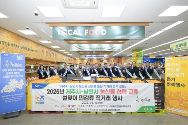 [È£³²´º½º¶óÀÎ = ÃÖÀç¼± ±âÀÚ] ³²¿ø½Ã(½ÃÀå ÃÖ°æ½Ä)¿Í Á¦ÁÖ½Ã(½ÃÀå ±è¿Ï±Ù), ³²¿ø½ÃÁ¶ÇÕ°øµ¿»ç¾÷¹ýÀÎ(´ëÇ¥ ÀÌâÁØ)°¡ ¼³ ¸íÀýÀ» ¾ÕµÎ°í Áö¿ª °£ ³ó»ê¹° »ó»ý Çù·ÂÀ» À§ÇÑ ¡®¼³¸ÂÀÌ ¸¸°¨·ù Á÷°Å·¡ Çà»ç¡¯¸¦ °³ÃÖÇÏ¸ç ³ó¾÷ ±³·ù Çù·Â °È¿¡ ³ª¼¹´Ù.