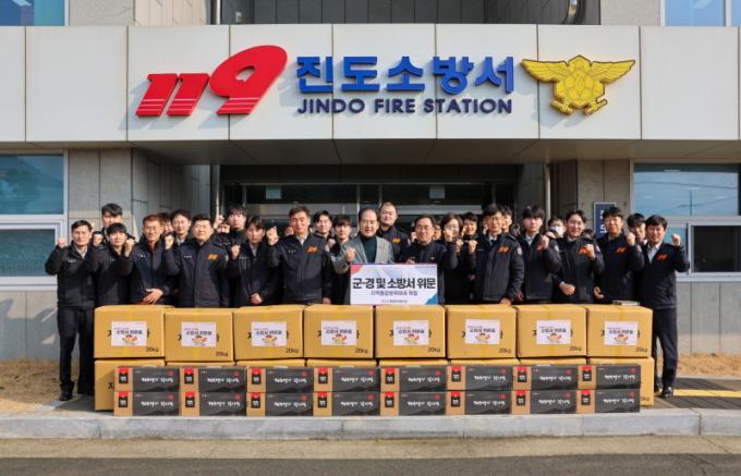 [È£³²´º½º¶óÀÎ = ¼ÀºÈ« ±âÀÚ] Áøµµ±º ÅëÇÕ¹æÀ§ÇùÀÇȸ(ÀÇÀå ±èÈñ¼ö)°¡ ¹ÎÁ· °íÀ¯ÀÇ ¸íÀýÀÎ ¼³À» ¸Â¾Æ ±ººÎ´ë¿Í ¼Ò¹æ¼¸¦ ¹æ¹®ÇØ, À§¹®Ç°À¸·Î ÁøµµÀÇ Æ¯»ê¹°À» Àü´ÞÇϸç À§¹®Çß´Ù.
