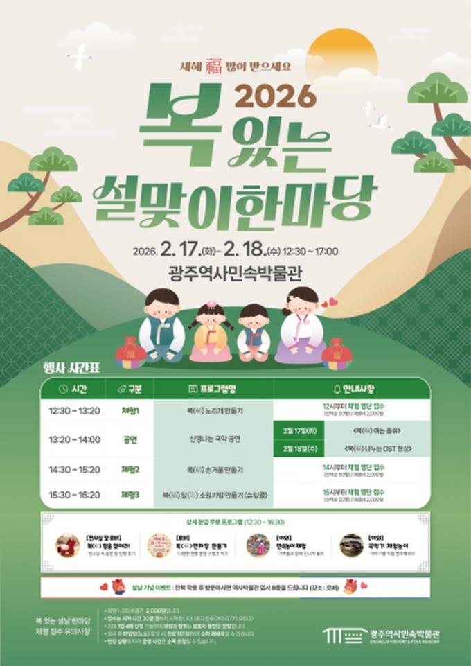 [È£³²´º½º¶óÀÎ = ¼ÀºÈ« ±âÀÚ] ±¤ÁÖ±¤¿ª½Ã ¿ª»ç¹Î¼Ó¹Ú¹°°üÀº ¹ÎÁ· ÃÖ´ë ¸íÀý ¼³³¯À» ¸Â¾Æ ¡®2026 ¼³¸ÂÀÌ ÇѸ¶´ç¡¯À» ¿ª»ç¹Î¼Ó¹Ú¹°°ü ÀÏ¿ø°ú ¸¶ÇÑÀ¯ÀûüÇè°ü¿¡¼ °¢°¢ ¿î¿µÇÑ´Ù.