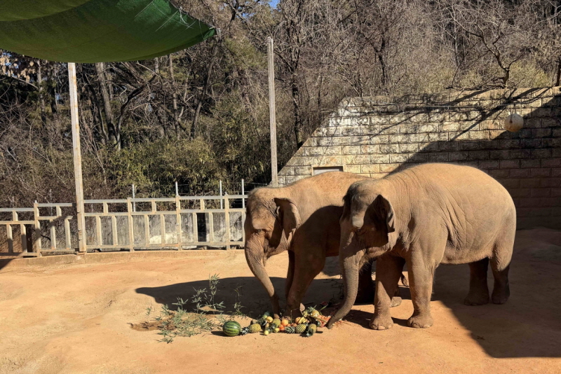 ¿ìÄ¡µ¿¹°¿ø ¾È¹æ¸¶´ÔÀÎ ¾Æ½Ã¾ÆÄÚ³¢¸® ¡®ºÀÀÌ¡¯(1998³â»ý)¿Í ¡®¿ì¸®¡¯(2010³â»ý) ¸ð³à¿¡°Ô´Â ¡®°úÀϽ÷ç´õ¹Ì¡¯¸¦ Á¦°øÇß´Ù. µÎ ÄÚ³¢¸®´Â Ư½Ä ¾Õ¿¡ ¾î±ú¸¦ ¸Â´ë°í »çÀÌÁÁ°Ô °úÀÏÀ» ³ª´²¸ÔÀ¸¸ç ¸ð³àÀÇ Á¤À» ³ª´³´Ù.