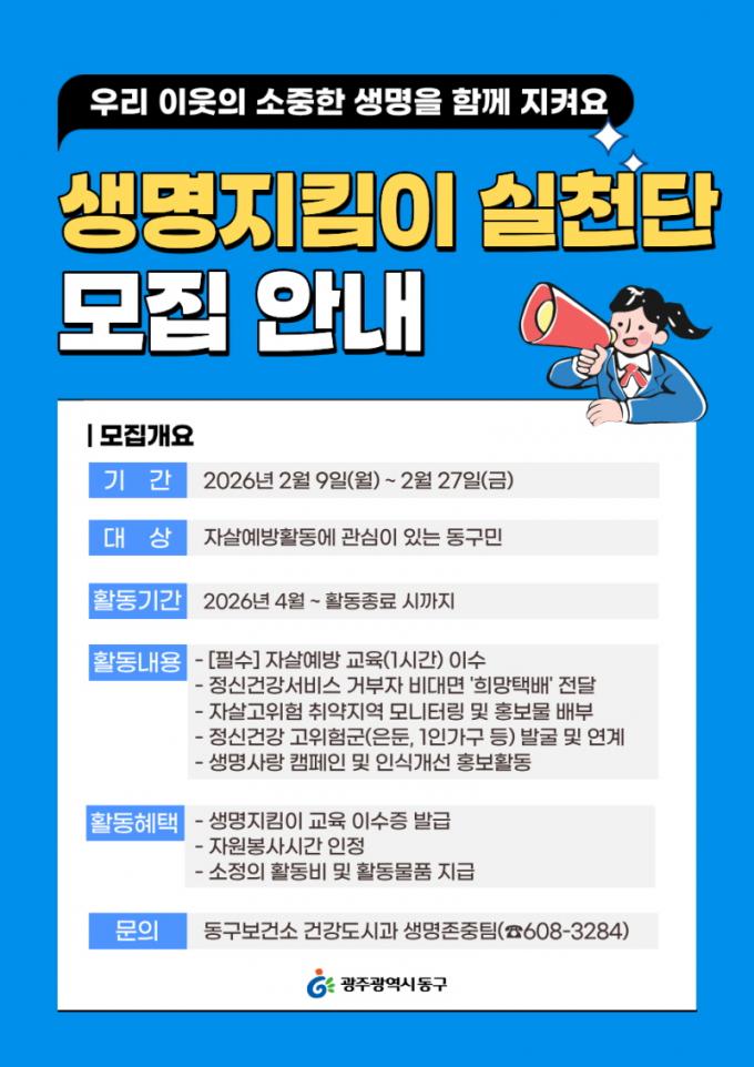 [È£³²´º½º¶óÀÎ = ¼ÀºÈ« ±âÀÚ] ±¤ÁÖ µ¿±¸´Â ¿À´Â 27ÀϱîÁö Á¤½Å°Ç° ÁõÁø°ú Àڻ쿹¹æ¿¡ °ü½É ÀÖ´Â ÁÖ¹ÎÀ» ´ë»óÀ¸·Î ¡®»ý¸íÁöÅ´ÀÌ ½Çõ´Ü¡¯À» ¸ðÁýÇÑ´Ù°í ¹àÇû´Ù.