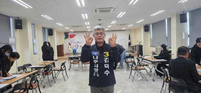 [È£³²´º½º¶óÀÎ = ¼ÀºÈ« ±âÀÚ] Á¶±¹Çõ½Å´ç ±è´ö¼ö ³ªÁÖ½ÃÀå ¿¹ºñÈĺ¸(Àü ±¹¹«ÃѸ®½Ç Á¤¹«±âȹºñ¼°ü)°¡ 20ÀÏ ¿ÀÀü 9½Ã ³ªÁֽü±°Å°ü¸®À§¿øÈ¸¸¦ ã¾Æ Á¦9ȸ Àü±¹µ¿½ÃÁö¹æ¼±°Å ³ªÁÖ½ÃÀå ¿¹ºñÈ帷Π°ø½Ä µî·ÏÀ» ¸¶Ä¡°í º»°ÝÀûÀÎ ¼±°Å¿îµ¿¿¡ µ¹ÀÔÇß´Ù.