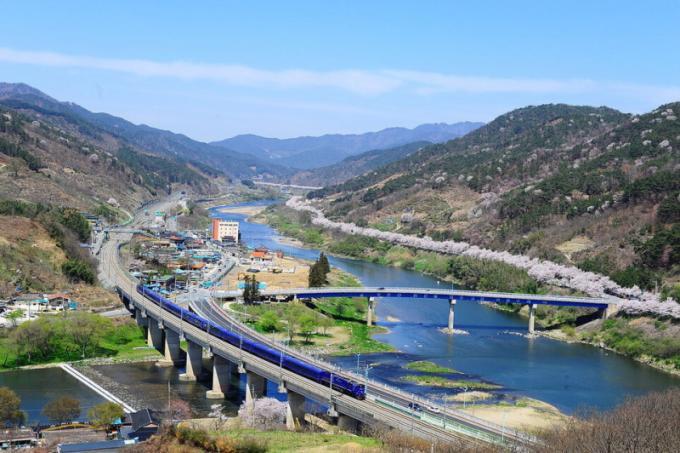 °î¼º ¿©ÇàÀº ¼¶Áø°±âÂ÷¸¶À»¿¡¼ ½ÃÀ۵ȴÙ. Áõ±â±â°üÂ÷°¡ Áö³ª°¡°í, ·¹ÀϹÙÀÌÅ©°¡ ö±æ À§¸¦ ´Þ¸°´Ù. üÇè°ú Á¤¿øÀÌ ¾î¿ì·¯Áø °ø°£Àº °èÀý¿¡ µû¶ó ¼·Î ´Ù¸¥ ºÐÀ§±â¸¦ º¸¿©ÁØ´Ù.