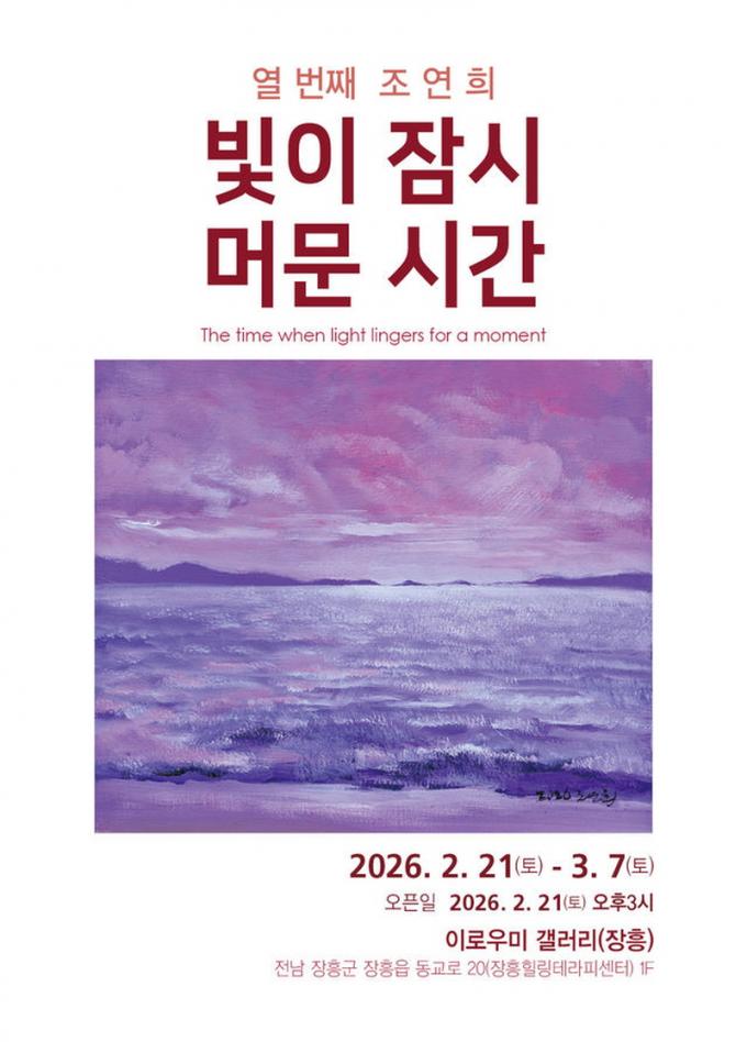 [È£³²´º½º¶óÀÎ = ¼ÀºÈ« ±âÀÚ] Âû³ªÀÇ ºûÀÌ ¸Ó¹«´Â ¹Ù´ÙÀÇ Ç³°æÀ» ÅëÇØ ³»¸éÀÇ ±×¸®¿ò°ú Ä¡À¯¸¦ ³ë·¡ÇÏ´Â Á¶¿¬Èñ ÀÛ°¡ÀÇ °³ÀÎÀü <ºûÀÌ Àá½Ã ¸Ó¹«´Â ½Ã°£>ÀÌ ¿À´Â 2¿ù 21ÀϺÎÅÍ 3¿ù 7ÀϱîÁö ÀåÈïÀ¾ ¼ÒÀç ¡®À̷οì¹Ì °¶·¯¸®¡¯¿¡¼ ¿¸°´Ù.