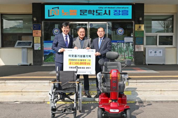 [È£³²´º½º¶óÀÎ = ¼ÀºÈ« ±âÀÚ] ÀåÈﱺÀº 20ÀÏ Á¤Èñ±â ÀåÈﱺÁöüÀå¾ÖÀÎÇùȸ ȸÀåÀÌ Áö¿ª ³» °Åµ¿ÀÌ ºÒÆíÇÑ ±º¹ÎÀ» À§ÇØ 250¸¸ ¿ø »ó´çÀÇ Àüµ¿ÈÙü¾î ¹× ³«»ó¹æÁö¿ë ÈÙü¾î ÃÑ 2´ë¸¦ ±âŹÇß´Ù°í ¹àÇû´Ù.