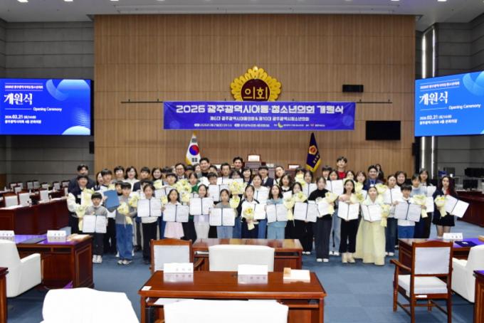 [È£³²´º½º¶óÀÎ = ¼ÀºÈ« ±âÀÚ] 2026³â ±¤ÁÖ±¤¿ª½Ã ¾Æµ¿¡¤Ã»¼Ò³âÀ» ´ëÇ¥ÇÒ Á¦6´ë ¾Æµ¿ÀÇȸ¿Í Á¦10´ë û¼Ò³âÀÇȸ°¡ 2¿ù 21ÀÏ, ±¤ÁÖ±¤¿ª½ÃÀÇȸ º»È¸ÀÇÀå¿¡¼ °³¿ø½ÄÀ» ¿°í º»°ÝÀûÀÎ ÀÇÁ¤È°µ¿ÀÇ ½ÃÀÛÀ» ¾Ë·È´Ù.
