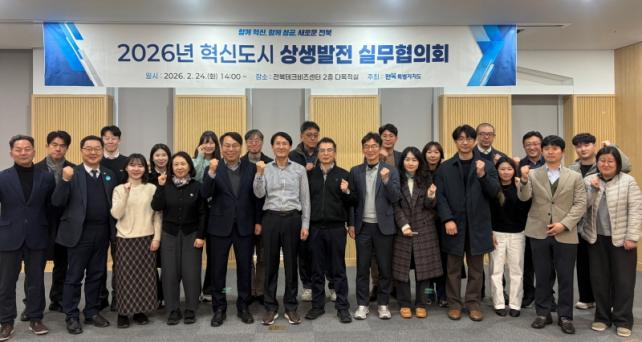 [È£³²´º½º¶óÀÎ = ¼ÀºÈ« ±âÀÚ] ÀüºÏƯº°ÀÚÄ¡µµ´Â 24ÀÏ ÀüºÏÇõ½Åµµ½Ã Å×Å©ºñÁî¼¾ÅÍ¿¡¼ ±¹Åä±³ÅëºÎ¿Í ÀÌÀü°ø°ø±â°ü, ÀüÁÖ½Ã, ¿ÏÁÖ±º °ü°èÀÚ µî 20¿© ¸íÀÌ Âü¼®ÇÑ °¡¿îµ¥ ¡®2026³â Çõ½Åµµ½Ã »ó»ý¹ßÀü ½Ç¹«ÇùÀÇȸ¡¯¸¦ °³ÃÖÇß´Ù.