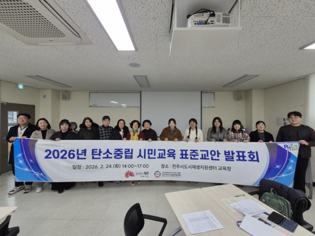 [È£³²´º½º¶óÀÎ = ¼ÀºÈ« ±âÀÚ] ÀüÁֽô 24ÀÏ ÀüÁֽõµ½ÃÀç»ýÁö¿ø¼¾ÅÍ¿¡¼ ź¼ÒÁ߸³ ½Ã¹Î°»ç 30¿© ¸íÀÌ Âü¼®ÇÑ °¡¿îµ¥ ½Ã¹ÎµéÀÇ Åº¼ÒÁ߸³ ±³À° ¼±ÅÃÀÇ ÆøÀ» ³ÐÈ÷°í, »ý¾ÖÁֱ⺰ ±³À°ÀÇ ÁúÀ» ³ôÀ̱â À§ÇÑ ¡®2026³â »ý¾ÖÁֱ⺰ ź¼ÒÁ߸³ ±³À°»ç¾÷ Ç¥Áر³¾È ¹ßǥȸ¡¯¸¦ °³ÃÖÇß´Ù.
