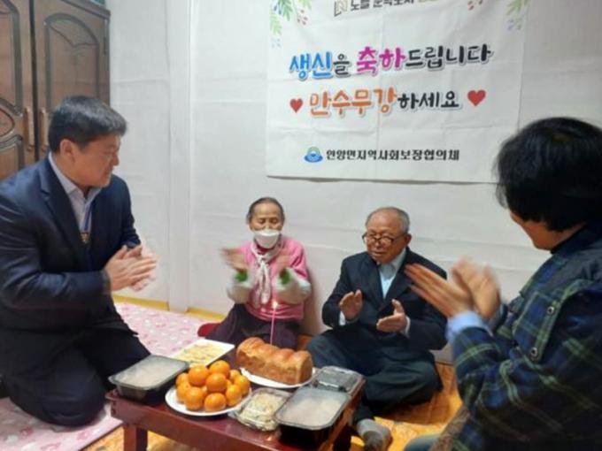 [È£³²´º½º¶óÀÎ = ¼ÀºÈ« ±âÀÚ] ÀåÈﱺ ¾È¾ç¸éÁö¿ª»çȸº¸ÀåÇùÀÇü(°øµ¿À§¿øÀå ¹Ú°ü¿õ, °í±æ¼®)´Â Áö³ 24ÀÏ °ü³» ¸¸ 90¼¼¸¦ ¸ÂÀº ¾î¸£½ÅÀ» ´ë»óÀ¸·Î ¡®Àå¼ö¾î¸£½Å »ý½Å»ó Â÷¸®±â¡¯ Çà»ç¸¦ ÁøÇàÇß´Ù.