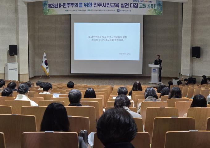±¤ÁÖ±¤¿ª½Ã±³À°Ã»Àº 26ÀÏ ±¤ÁֽùÎÇùÄ¡ÁøÈï¿ø ´ë°´ç¿¡¼ ÃÊ¡¤Áß¡¤°í¡¤Æ¯¼öÇб³ ¹ÎÁֽùα³À° ´ã´ç ±³¿ø 200¿© ¸íÀ» ´ë»óÀ¸·Î ¡®2026³â K-¹ÎÁÖÁÖÀǸ¦ À§ÇÑ ¹ÎÁֽùα³À° ½Çõ ´ÙÁü ±³¿ø °øÀ¯È¸¡¯¸¦ ¿°í ÀÌ·¯ÇÑ ³»¿ëÀ» ¾È³»Çß´Ù.