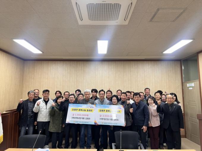 À̳¯ ±è¿ë¹® ´ëÇ¥´Â Çö±Ý 100¸¸ ¿øÀ», ½Å¹®È£ ´ëÇ¥´Â Çö±Ý 200¸¸ ¿øÀ» °¢°¢ ±âŹÇß´Ù. Àü´ÞµÈ ¼º±ÝÀº ÀåÆò¸é Áö¿ª»çȸº¸ÀåÇùÀÇü¸¦ ÅëÇØ °ü³» Ãë¾à°èÃþÀ» À§ÇÑ Æ¯È»ç¾÷¿¡ »ç¿ëµÉ ¿¹Á¤ÀÌ´Ù.