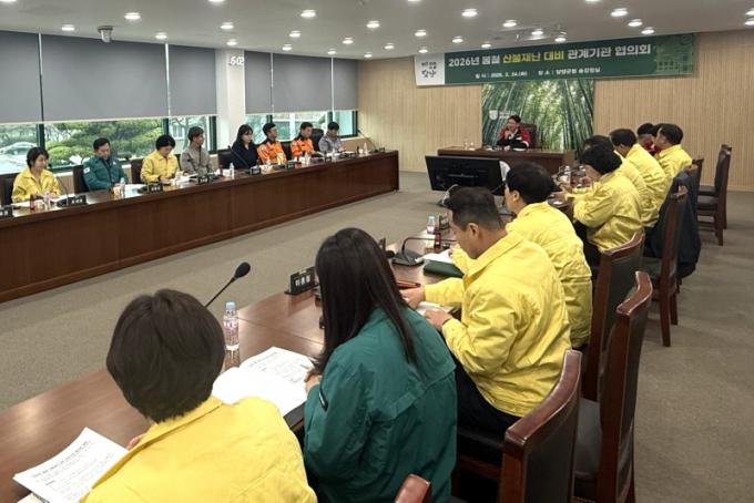 À̳¯ ´ã¾ç±ºÃ» ¼Û°Á¤½Ç¿¡¼ ¿¸° ȸÀÇ¿¡´Â ´ã¾ç¼Ò¹æ¼, ´ã¾ç°æÂû¼, Çѱ¹Àü·Â°ø»ç, »ê¸²Á¶ÇÕ µî »êºÒ °ü°è±â°ü°ú °¢ À¾¸éÀåµµ Âü¼®ÇØ º½Ã¶ »êºÒ¹æÁö Á¾ÇÕ´ëÃ¥À» °øÀ¯ÇÏ°í ±â°üº° ´ëÀÀ ¿ªÇÒ°ú °øÁ¶ ü°è¸¦ Á¡°ËÇß´Ù.