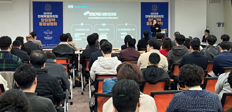 [È£³²´º½º¶óÀÎ = ¼ÀºÈ« ±âÀÚ] ÀüºÏƯº°ÀÚÄ¡µµ´Â 26ÀÏ ÀüºÏÅ×Å©ºñÁî¼¾ÅÍ¿¡¼ ¿¹ºñâ¾÷ÀÚ, â¾÷±â¾÷, À¯°ü±â°ü °ü°èÀÚ µî 100¿© ¸íÀÌ Âü¼®ÇÑ °¡¿îµ¥¡®2026³â ÀüºÏƯº°ÀÚÄ¡µµ â¾÷Á¤Ã¥ ÅëÇÕ¼³¸íȸ¡¯¸¦ °³ÃÖÇß´Ù.