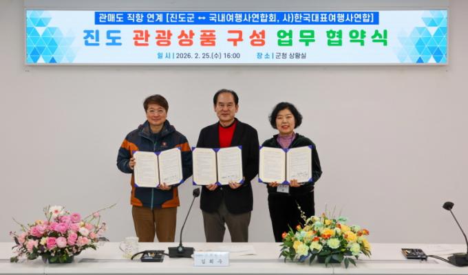 Áøµµ±ºÀº Áö³ 25ÀÏ¿¡ Áøµµ±ºÃ»¿¡¼ ±¹³»¿©Çà»ç¿¬ÇÕȸ, Çѱ¹´ëÇ¥¿©Çà»ç¿¬ÇÕ°ú ÇÔ²² ¡®°ü¸Åµµ Á÷Ç× ¿¬°è Áøµµ °ü±¤»óǰ ±¸¼º¡¯À» À§ÇÑ ¾÷¹«Çù¾à(MOU)À» ü°áÇß´Ù.