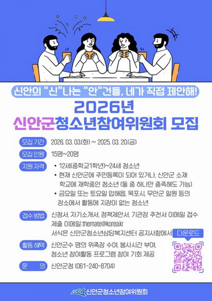 [È£³²´º½º¶óÀÎ = ¼ÀºÈ« ±âÀÚ] ½Å¾È±ºÀÌ Áö¿ª û¼Ò³âµéÀÇ »ý»ýÇÑ ¸ñ¼Ò¸®¸¦ Á¤Ã¥ ÇöÀå¿¡ Á÷Á¢ ´ã¾Æ³»±â À§ÇØ ¡®2026³â ½Å¾È±º û¼Ò³âÂü¿©À§¿øÈ¸¡¯ ½Å±Ô À§¿øÀ» ¸ðÁýÇÑ´Ù.
