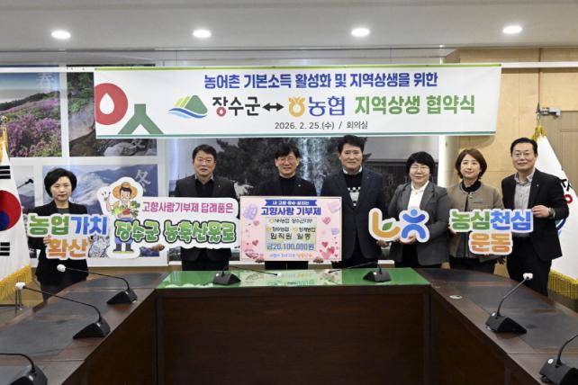 [È£³²´º½º¶óÀÎ = ¼ÀºÈ« ±âÀÚ] Àå¼ö±ºÀº NH³óÇù Àå¼ö±ºÁöºÎ(ÁöºÎÀå Á¤ÇöÁÖ), Àå¼ö³óÇù(Á¶ÇÕÀå ±è¿ëÁØ), Àå°è³óÇù(Á¶ÇÕÀå °ûÁ¡¿ë) µî Àå¼öÁö¿ª ³óÇù ÀÓÁ÷¿øµéÀÌ °íÇâ»ç¶û±âºÎ±Ý 2,010¸¸ ¿øÀ» ±âŹÇß´Ù°í 2ÀÏ ¹àÇû´Ù.