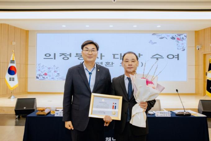 [È£³²´º½º¶óÀÎ = ¼ÀºÈ« ±âÀÚ] ÇØ³²±ºÀÇȸ ±è¿µÈ¯ ºÎÀÇÀåÀÌ Áö³ 2¿ù 27ÀÏ Àü¶ó³²µµ ½Ã¡¤±ºÀÇȸ ÀÇÀåÇùÀÇȸ·ÎºÎÅÍ Áö¹æÀÇÁ¤ºÀ»ç´ë»óÀ» ¼ö»óÇß´Ù.