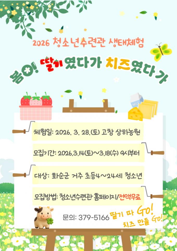 ½Åû ±â°£Àº 3¿ù 14ÀÏ(Åä)ºÎÅÍ 3¿ù 18ÀÏ(¼ö)±îÁöÀ̸ç, ȼø±º¿¡ ÁÖ¼Ò¸¦ µÐ ÃʵîÇб³ 4Çгâ ÀÌ»ó 24¼¼ ÀÌÇÏ Ã»¼Ò³âÀÌ¸é ´©±¸³ª ½ÅûÇÒ ¼ö ÀÖ´Ù. ȼø±ºÃ»¼Ò³â¼ö·Ã°ü ȨÆäÀÌÁö(https://hwasunyouth.kr) ÇÁ·Î±×·¥ ½Åû °Ô½ÃÆÇÀ» ÅëÇØ ½Åû °¡´ÉÇϸç, ÃÖÁ¾ Âü¿©ÀÚ´Â °³º° ¹®ÀÚ·Î ¾È³»ÇÒ ¿¹Á¤ÀÌ´Ù.