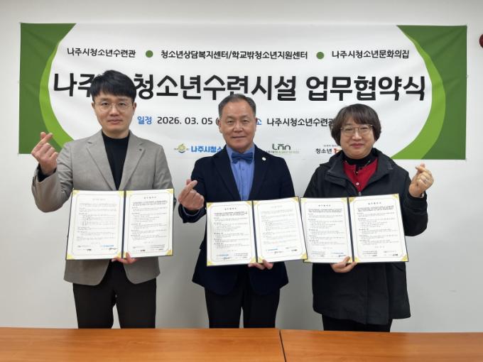 [È£³²´º½º¶óÀÎ = ¼ÀºÈ« ±âÀÚ] ³ªÁÖ½Ãû¼Ò³â¼ö·Ã°ü, ³ªÁÖ½Ãû¼Ò³â¹®ÈÀÇÁý, ³ªÁÖ½Ãû¼Ò³â»ó´ãº¹Áö¼¾ÅÍ, ³ªÁÖ½ÃÇб³¹Ûû¼Ò³âÁö¿ø¼¾ÅÍ´Â Ãֱ٠û¼Ò³â Áö¿ø °È¸¦ À§ÇÑ ¾÷¹«Çù¾à(MOU)À» ü°áÇÏ°í »óÈ£ Çù·Âü°è¸¦ ±¸ÃàÇϱâ·Î Çß´Ù.