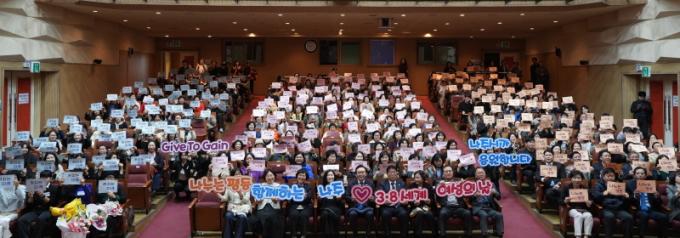 À̳¯ Çà»ç¿¡´Â À±º´Å ³ªÁÖ½ÃÀå°ú ÀÌÀç³² ³ªÁÖ½ÃÀÇȸ ÀÇÀåÀ» ºñ·ÔÇÑ ½ÃÀÇ¿ø, °øÁ÷ÀÚ, À¯°ü±â°ü °ü°èÀÚ, ¿©¼º´Üü ȸ¿ø µî 300¿© ¸íÀÌ Âü¼®ÇØ ¼¼°è ¿©¼ºÀÇ ³¯ÀÇ Àǹ̸¦ µÇ»õ±â°í ¼ºÆòµî »çȸ ½ÇÇö ÀÇÁö¸¦ ´ÙÁ³´Ù.