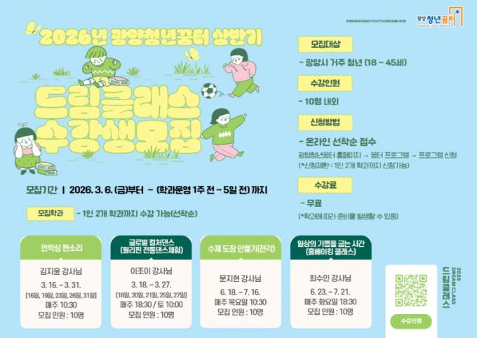 [È£³²´º½º¶óÀÎ = ¼ÀºÈ« ±âÀÚ] ±¤¾çû³â²ÞÅÍ(¼¾ÅÍÀå ¹èÇý±Ý)´Â Áö¿ª û³âÀÌ Á÷Á¢ ±âȹÇÏ°í ¿î¿µÇϴ û³â ÁÖµµÇü ÇнÀ ÇÁ·Î±×·¥ ¡®2026³â »ó¹Ý±â µå¸²Å¬·¡½º¡¯ ¼ö°»ýÀ» ¸ðÁýÇÑ´Ù°í ¹àÇû´Ù.