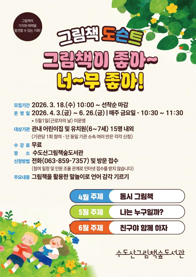 À̹ø ÇÁ·Î±×·¥Àº ÀÍ»ê Áö¿ª ¾î¸°ÀÌÁý°ú À¯Ä¡¿ø À¯¾ÆµéÀ» ´ë»óÀ¸·Î ±×¸²Ã¥ °¨»ó°ú ÇØ¼³À» °áÇÕÇÑ Æ¯º°ÇÑ µ¶¼ üÇè ±âȸ¸¦ Á¦°øÇϱâ À§ÇØ ¸¶·ÃµÆ´Ù.