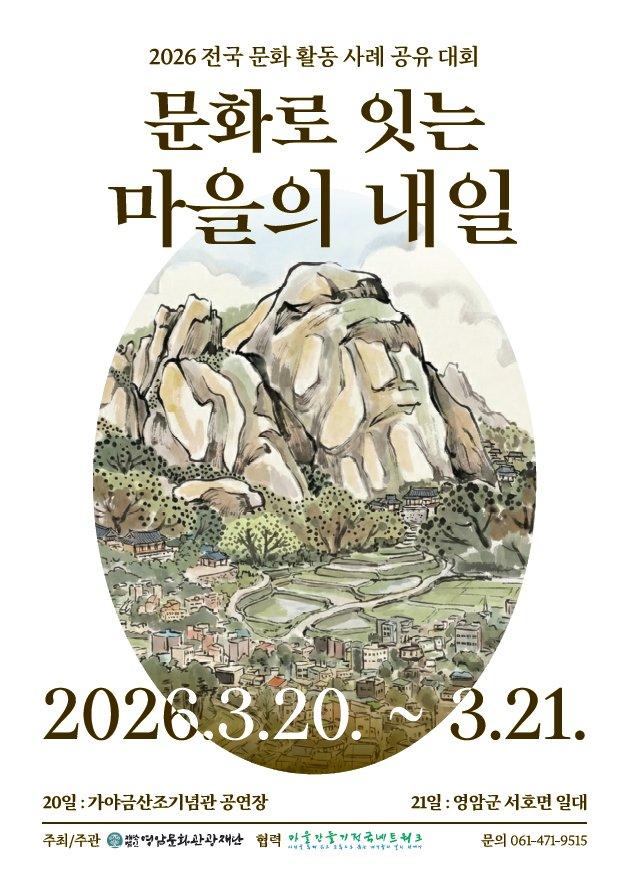 [È£³²´º½º¶óÀÎ = ¼ÀºÈ« ±âÀÚ] (Àç)¿µ¾Ï¹®È°ü±¤Àç´ÜÀº 3¿ù 20ÀϺÎÅÍ 21ÀϱîÁö ¿µ¾Ï °¡¾ß±Ý»êÁ¶±â³ä°ü °ø¿¬Àå¿¡¼ 2026 Àü±¹ ¹®È Ȱµ¿ »ç·Ê °øÀ¯ ´ëȸ¸¦ °³ÃÖÇÑ´Ù.