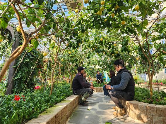 ¿Â½Ç ³»ºÎ¿¡´Â °¨±Ö·ù µî ¾Æ¿´ë ½Ä¹°ÀÌ ÅͳΠÇüÅ·Π½ÄÀçµÇ¾î À̱¹ÀûÀÎ ºÐÀ§±â¸¦ ¿¬ÃâÇϰí ÀÖÀ¸¸ç, ½Ä¹°°ú ²É »çÀ̸¦ µû¶ó »êÃ¥ÇÒ ¼ö ÀÖ´Â º¸Çà·Î°¡ Á¶¼ºµÇ¾î °ü¶÷°´µéÀÌ ÀÚ¿¬ ¼Ó¿¡¼ Æí¾ÈÇÑ ½Ã°£À» º¸³¾ ¼ö ÀÖµµ·Ï ¸¶·ÃµÇ¾î ÀÖ´Ù.