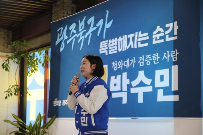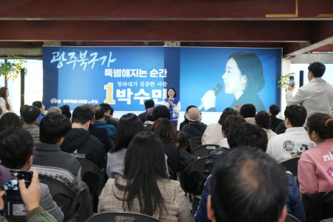 [È£³²´º½º¶óÀÎ = ¼ÀºÈ« ±âÀÚ] ´õºÒ¾î¹ÎÁÖ´ç ¹Ú¼ö¹Î ±¤ÁÖÆ¯º°½ÃÀÇ¿ø ¿¹ºñÈĺ¸(±¤ÁÖ ºÏ±¸ Á¦3¼±°Å±¸)°¡ 15ÀÏ ¿ÀÈÄ 1½Ã, ¼±°Å»ç¹«¼Ò °³¼Ò½ÄÀ» ¿°í º»°ÝÀûÀÎ ¼¼¸ôÀÌ¿¡ ³ª¼¹´Ù. À̳¯ °³¼Ò½Ä¿¡´Â Áö¿ª Áֹΰú ÁöÁöÀÚ µî ¾à 500¿© ¸íÀÌ Âü¼®ÇØ ¹Ú ¿¹ºñÈ常¦ ÇâÇÑ ¶ß°Å¿î °ü½ÉÀ» ÀÔÁõÇÏ¸ç ¼ºÈ²¸®¿¡ ¸¶¹«¸®µÆ´Ù.