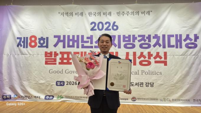 [È£³²´º½º¶óÀÎ = ¼ÀºÈ« ±âÀÚ] Àü¶ó³²µµÀÇȸ ÀÌÀçÅ ÀÇ¿ø(´õºÒ¾î¹ÎÁÖ´ç¤ý³ªÁÖ3)ÀÌ Áö³ 3¿ù 16ÀÏ ±¹È¸µµ¼°ü °´ç¿¡¼ ¿¸° ¡®2026 °Å¹ö³Í½ºÁö¹æÁ¤Ä¡´ë»ó °ø¸ð´ëȸ¡¯ ½Ã»ó½Ä¿¡¼ ¡®»çȸ°æÁ¦È°·Â ÁõÁø¡¯ ºÎ¹® ÃÖ¿ì¼ö»óÀ» ¼ö»óÇϸç 2024³â, 2025³â¿¡ À̾î 3³â ¿¬¼Ó ÃÖ¿ì¼ö»ó ¼ö»óÀÇ ¿µ¿¹¸¦ ¾È¾Ò´Ù.
