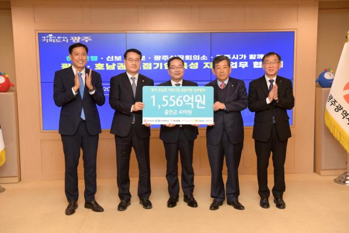 [È£³²´º½º¶óÀÎ = ¼ÀºÈ« ±âÀÚ] ±¤ÁÖ±¤¿ª½Ã(½ÃÀå °±âÁ¤)´Â 16ÀÏ ½Ãû ºñÁî´Ï½º·ë¿¡¼ ÇϳªÀºÇà, ±¤ÁÖ»ó°øÈ¸ÀǼÒ, ½Å¿ëº¸Áõ±â±Ý, ±â¼úº¸Áõ±â±Ý°ú ÇÔ²² Áö¿ª Áß¼Ò±â¾÷ À¶ÀÚ Áö¿øÀ» ³»¿ëÀ¸·Î ÇÏ´Â ¡®±¤ÁÖ¡¤È£³²±Ç °ÅÁ¡±â¾÷ À°¼º Áö¿ø ¾÷¹«Çù¾à¡¯À» ü°áÇß´Ù.