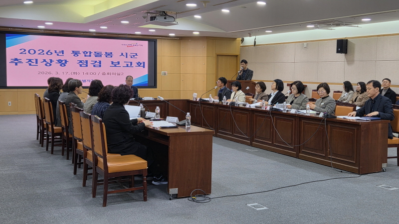 º¸°íȸ¿¡´Â µµ º¹Áö¿©¼ºº¸°Ç±¹Àå°ú 14°³ ½Ã±º ÅëÇÕµ¹º½ ¼Ò°ü ±¹¡¤°úÀåÀÌ Âü¼®ÇÑ °¡¿îµ¥ ½Ã±ºº° ÀÚüÁ¡°Ë °á°ú¿Í ½Ã¹ü»ç¾÷ ¿î¿µÇöȲ, ÃßÁø°èȹ, ÇöÀå ¾Ö·Î»çÇ×À» °øÀ¯Çß´Ù. Á¶·Ê¡¤Á¶Á÷¡¤Àη µî Á¦µµ ±â¹Ý Á¤ºñ »óȲ°ú À¾¸éµ¿ Àü´Þü°è, Áö¿ªÆ¯È¼ºñ½º ÁغñÇöȲ µîµµ Á¡°ËÇß´Ù. ¾Æ¿ï·¯ ½ÃÇà Ãʱ⠽ÇÇà·ÂÀ» ³ôÀ̱â À§ÇÑ Çù·Â ¹æ¾Èµµ ³íÀÇÇß´Ù.