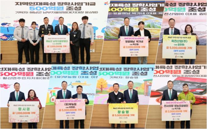 ÇØ³²±º °ü°èÀڴ¡°Áö¿ª ±â¾÷°ú ÁÖ¹Î, ´Üü°¡ ÇÔ²² ÀåÇлç¾÷±â±Ý Á¶¼º¿¡ µ¿ÂüÇØ ÁÖ½Ã¾î ±íÀÌ °¨»çµå¸°´Ù¡±¸ç¡°Çس²ÀÌ ±³À°µµ½Ã·Î µµ¾àÇÒ ¼ö ÀÖµµ·Ï ´Ù¾çÇÑ Á¤Ã¥À» ¹ß±¼Çϰí, Çлý»Ó ¾Æ´Ï¶ó ±³À°À» ÇÊ¿ä·Î ÇÏ´Â ±º¹ÎÀ̶ó¸é ´©±¸³ª ÇÔ²² ¹è¿ï ¼ö Àִ ȯ°æÀ» ¸¸µé¾î °¡°Ú´Ù¡±°í ¹àÇû´Ù.